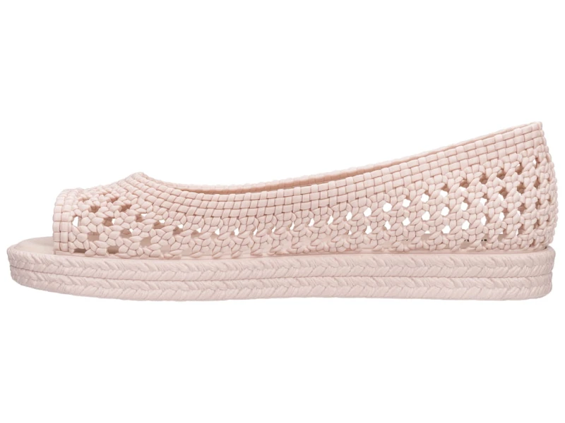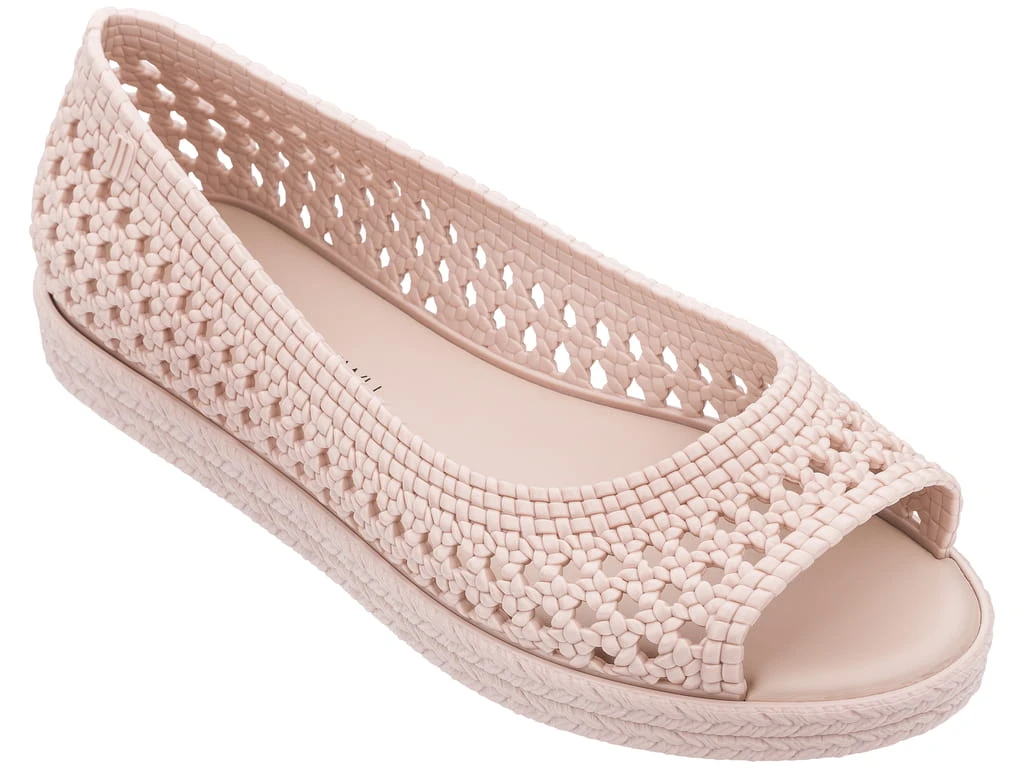 The perfect Melissa Espadrille is here. Puzzle has an elevated flatform heel and cute peep toe. The padded footbed and frost finish make this style stand out from the crowd. Seen here in Green .